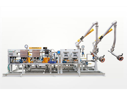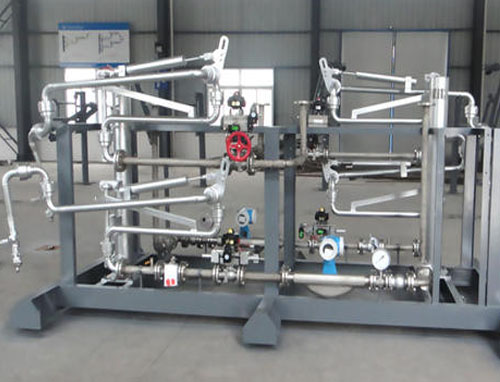 油品定量裝車橇裝組是指將每一個裝車鶴位內的儀表和設備集成在一個專用的框架結構內,儀表和設備包括裝車鶴管、流量計、防溢油靜電報警控制器、壓力變送器、裝車流量控制閥、緊急切斷閥,裝車泵、批量控制器等, 只預留工藝連接口和控制電源和通訊接口,這個整體集成部分稱為裝車橇。與傳統的裝車控制系統就地組裝比較,裝車橇可以節(jié)省現場設計和現場施工量,縮短項目工期,提高裝車控制系統的質量。